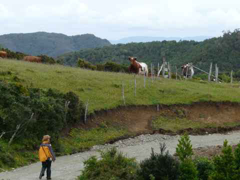 Depuis la gare rurale d’Ancud, un « micro » nous emmène à Pumillahue et Duhatao, juste à côté de Puñihuil (au nord ouest). |