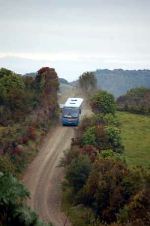Le bus arrive. Nous montons, accompagnés de passagers habituels dans cette région. |